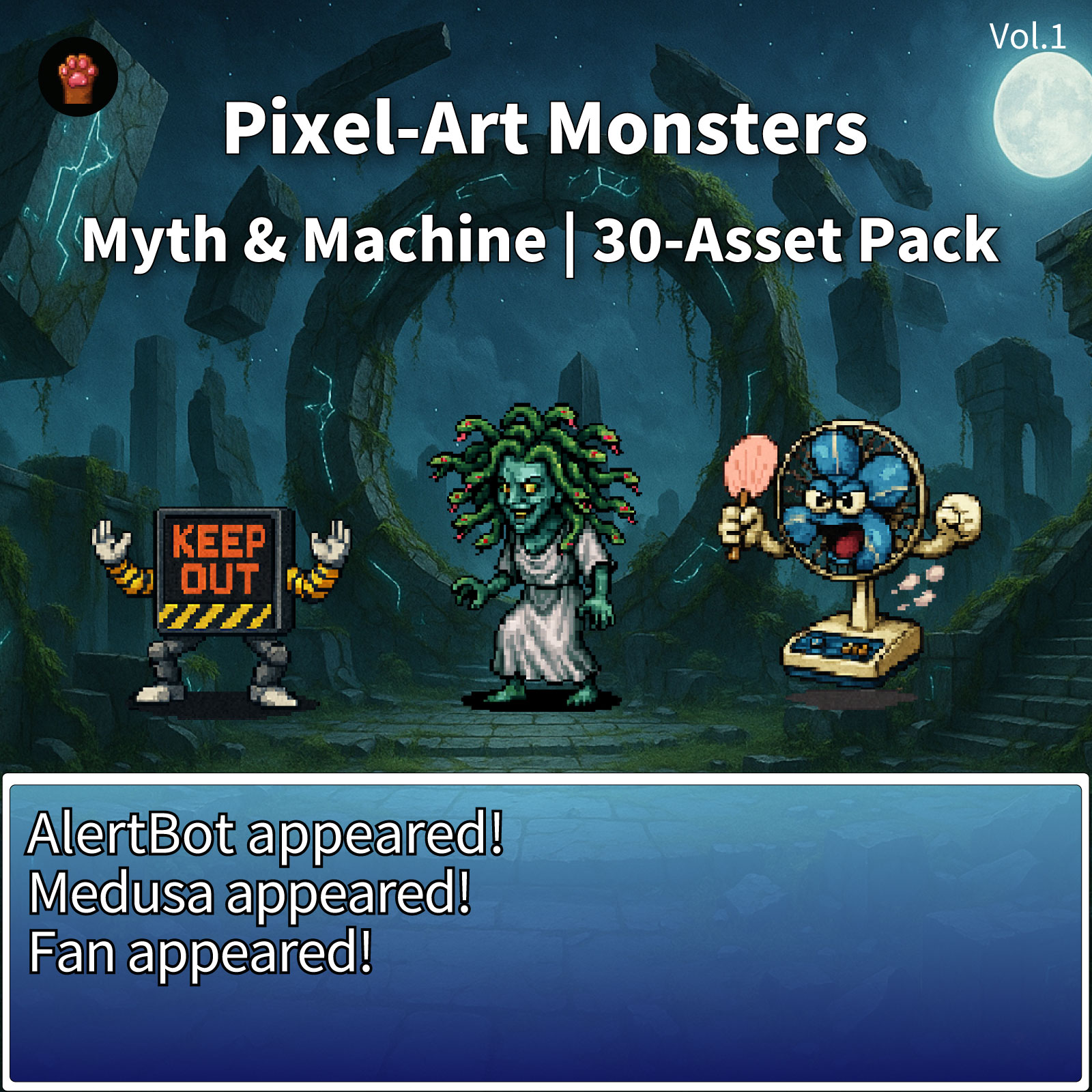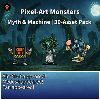 We wanted faces beyond the core fantasy starter—myths that can anchor story bosses, and machines that flex from SF to gag. Both sides are unified to the same resolution and style, so they sit together cleanly in your project.