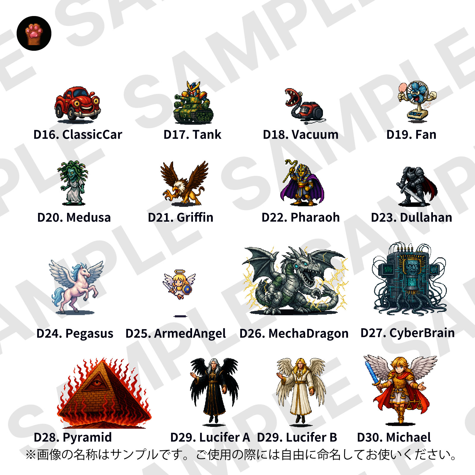 Two pillars—mythic icons and mechanical foes—in one versatile set. Medusa, Griffin, Pharaoh, Dullahan, Pegasus, Angels & Demons on the myth side; Robo Hound, Mecha Dragon, Electronic Brain, and even anthropomorphized home appliances on the machine side. Covers minions to bosses, usable in both fantasy and light-SF settings. Bonus: Lucifer (before the fall) included.