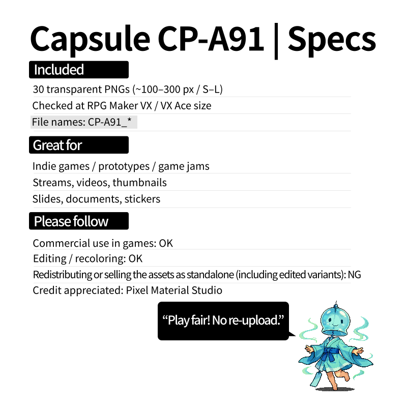 - Example use: indie games, prototypes, game jams, thumbnails, slides, stickers